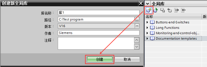 打开新的 TIA Portal 项目“TEST”,点击“创建新全局库”按钮,如图 3 所示。