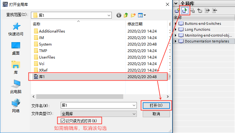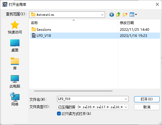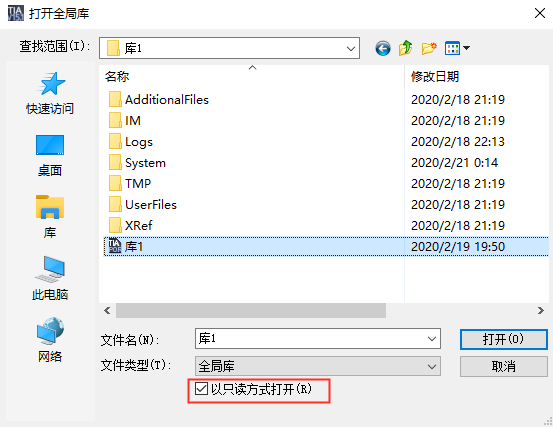 原因是库的默认打开方式是只读,以避免对用户的库元素的误修改。如果需要编辑库,则在打开时取消勾选“以只读方式打开”,如图 19 所示;