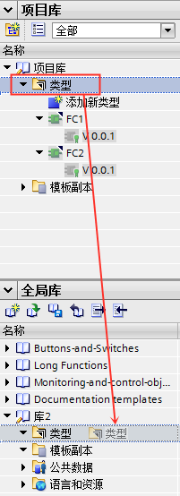 项目库类型来自于项目的程序,而全局库类型不仅可以来自项目的程序而且可以来自于项目库类型;项目中如果使用全局库中的类型,TIA Portal 软件会同时将该类型复制到项目库类型。