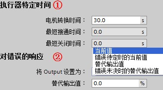 "电机转换时间":执行器动作从下限停止位到上限停止位所需的时间(以秒为单位);