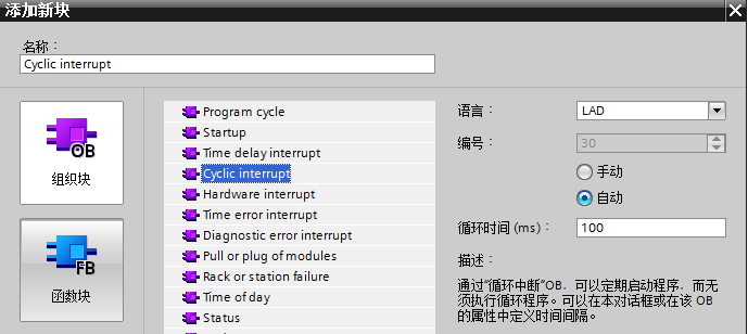 图 3. 在循环中断 OB 中添加 PID_Temp 指令