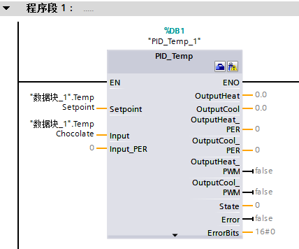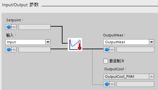 从控制器的过程值是水的实际温度 TempWater,这里假设 TempWater 已经经过程序标定,所以直接连接到 Input。