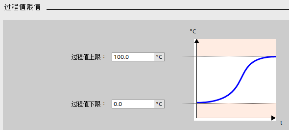 3、进入过程值限制界面,这里假设水温度的绝对范围是 0-100℃,设置如图 16 所示。