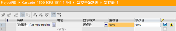 2、在监控表里修改设定值,这里假设工作点温度是 60℃,如图 26 所示。