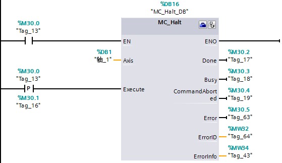 使用技巧:常用MC_Halt指令来停止通过MC_MoveVelocity指令触发的轴的运行。