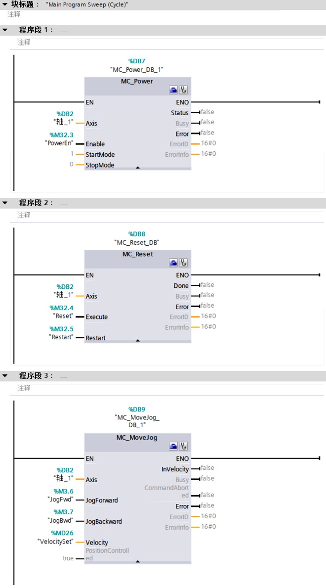 点动功能至少需要MC_Power,MC_Reset,和MC_Jog指令。