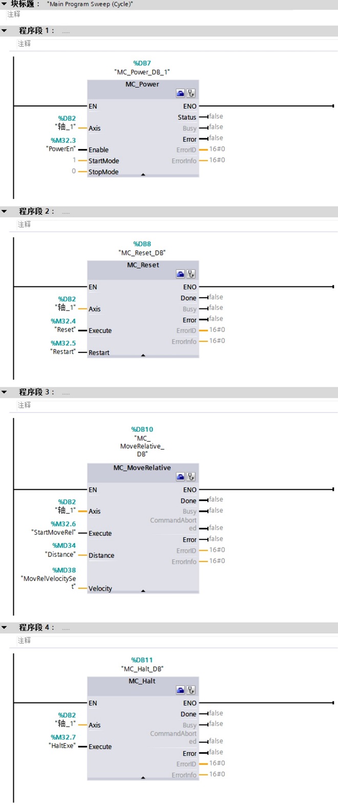相对速度控制功能,需要MC_Power,MC_Reset,MC_MoveRelative和MC_Halt指令。