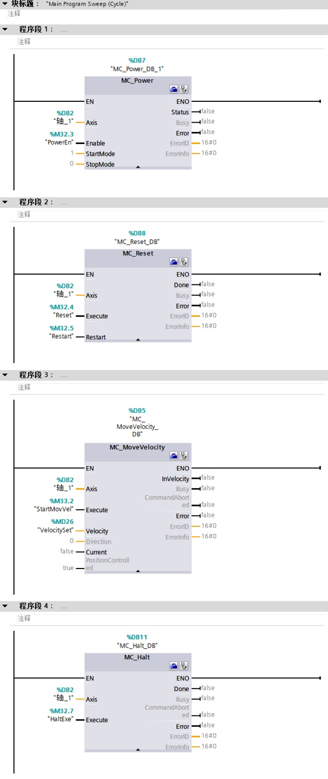 相对速度控制功能,需要MC_Power,MC_Reset,和MC_MoveVolcity,以及MC_Halt指令。