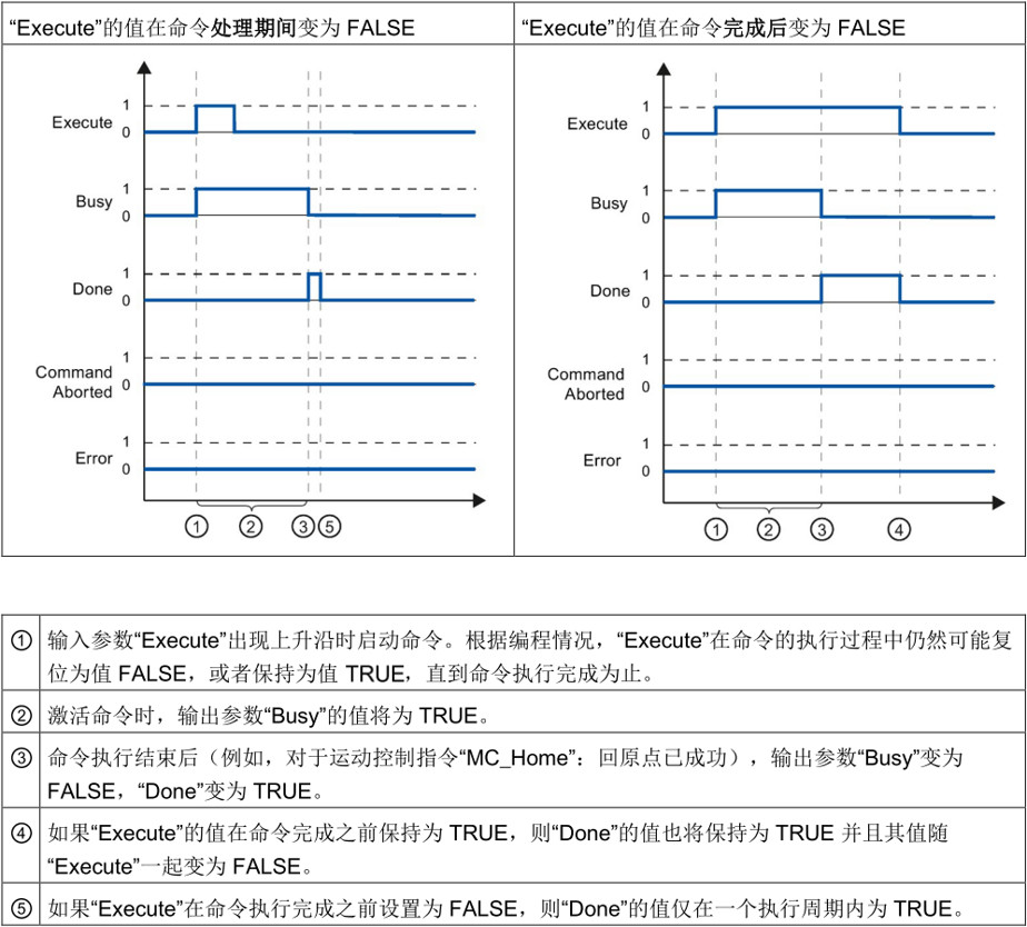 带有 Execute 管脚的指令,例如 MC_MoveRelative 等指令的 Done 和 Execute 之间有下如图 2 所示描述的关系: