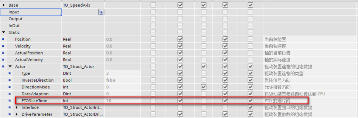 从 V4.4 固件版本以后,工艺对象 V7.0开始,如图 5 所示,可以在工艺对象对应的 DB 中修改时间片时间"Static->Actor->PTOSliceTime",修改范围为 2- 20ms。在一些需要快速响应的应用可以考虑减小时间片,例如:贴标机。如果希望降低 CPU 的运算负荷,可以考虑增大时间片时间。