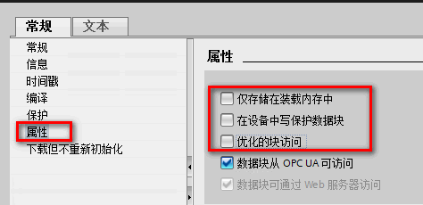 在数据块"属性"选项中,需禁用以下属性,如图 11 所示: