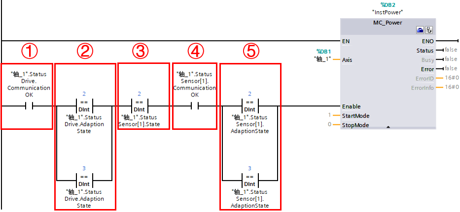 之后在程序中编写 MC_POWER 使能程序,使用上述变量,如图 15 所示。