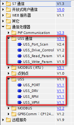 如图 1 所示,S7-1200 USS 有两个 USS 指令库