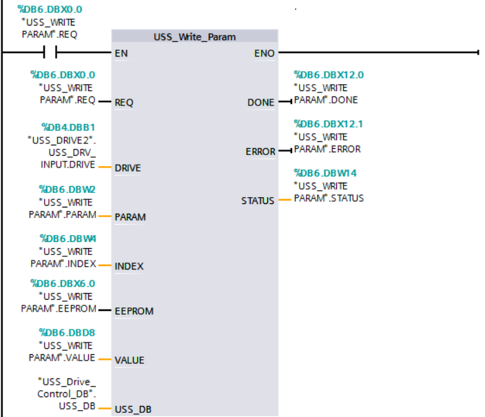 USS_Write_Param 指令用于修改驱动器中的参数。必须从主程序循环 OB 中调用 USS_Write_Param。