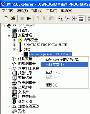 首先用鼠标右键点击OPC Groups ,在快捷菜单中点击“系统参数”,如图2所示。
