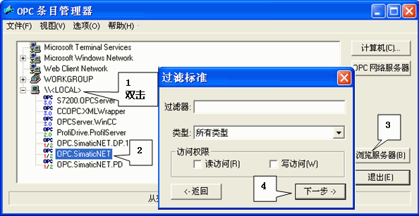 然后选中OPC.SimaticNET,点击“浏览服务器”按钮进行搜索。如图3所示。