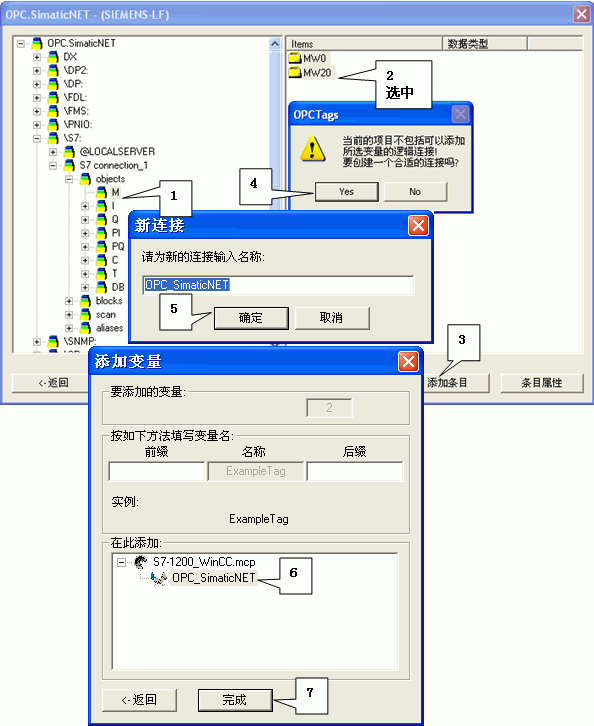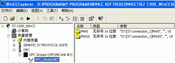 首先在OPC Scout中建立好所有WinCC中要用到的变量,步骤 OPC scout 。