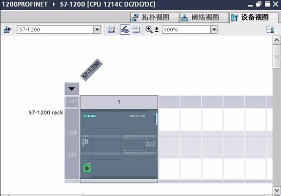4.双击该模块进入设备视图。在设备视图中可以进行S7-1200 系统的硬件配置。参考图5 S7-1200 设备视图。