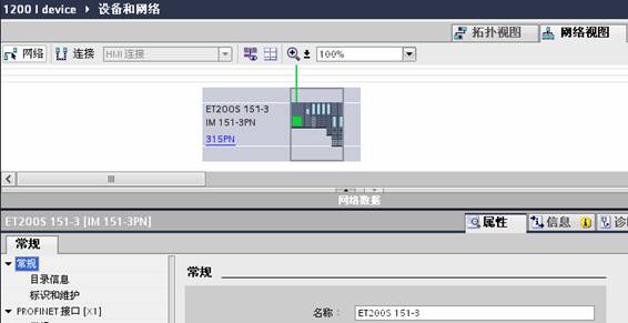 13. 点击IM151-3 PN模块的图标,然后在IM 151-3“属性”〉“常规”的“名称”中定义该接口模块的设备名称,参考图13 IM151-3 设置设备名称。