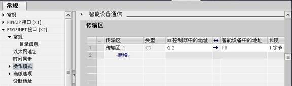 20. 然后在图18 操作模式的传输区中定义I device 与 控制器通信的数据区域。例如将控制器的QB2 传送给智能设备的IB0。参考图20传输区定义。