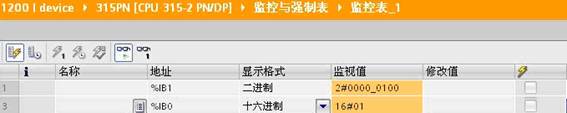 1.系统结构建立后,PROFINET IO控制器 S7-1200、智能设备CPU 315-2PN/DP、PROFINENTIO 设备IM151-3 之间可以进行数据交换。对S7-1200 的变量QB2 赋值为1,参考图23 PROFINET控制器S7-1200变量赋值。