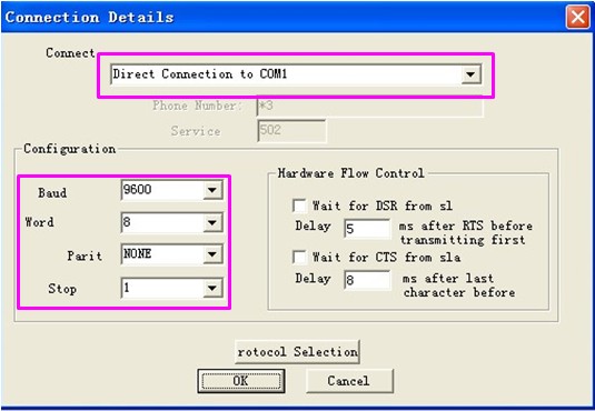 流控制选择:0-(默认值)无流控制 |