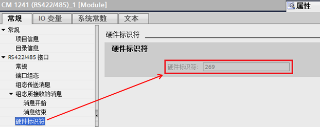 最后在“硬件标识符”里确认一下硬件标识符为269(该参数在程序编程中会被使用),如下图6.所示: