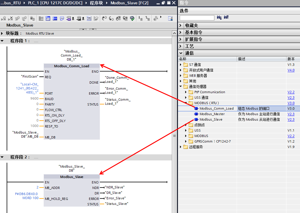 TIA V13 SP1版本软件中提供了2个版本的Modbus RTU指令: