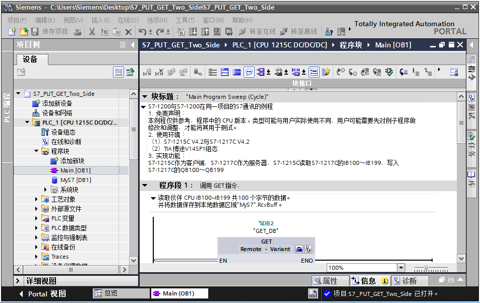 3. 打开并恢复,在OB1的块标题有程序的整体说明,每一程序段均有该段的说明