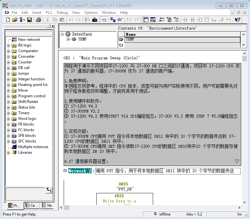 4. 打开并恢复,在OB1的块标题有程序的整体说明,每一程序段均有该段的说明