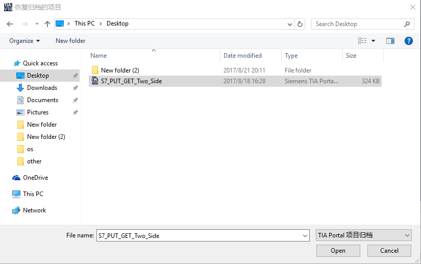 例程中的TIA博途项目文件与STEP 7项目文件均为归档文件,需要按如下方式打开: