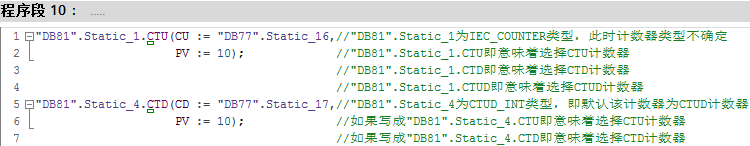 从以上四个示例可以看出,IEC_COUNTER、CTU_INT、CTD_INT、CTUD_INT四种数据类型没有本质的区别,可以互换使用,为使得程序明确,建议只使用计数器对应名字的数据类型。