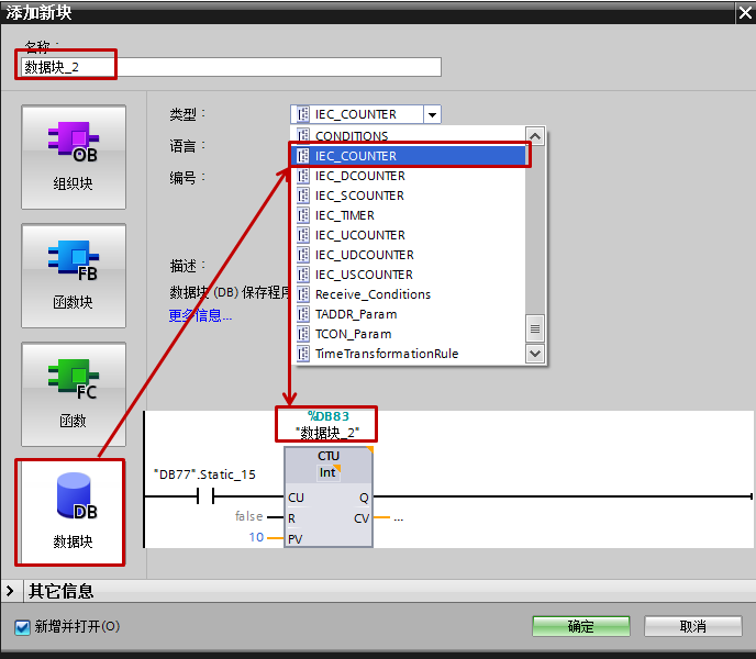 图10 新建IEC_COUNTER类型DB
