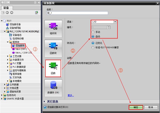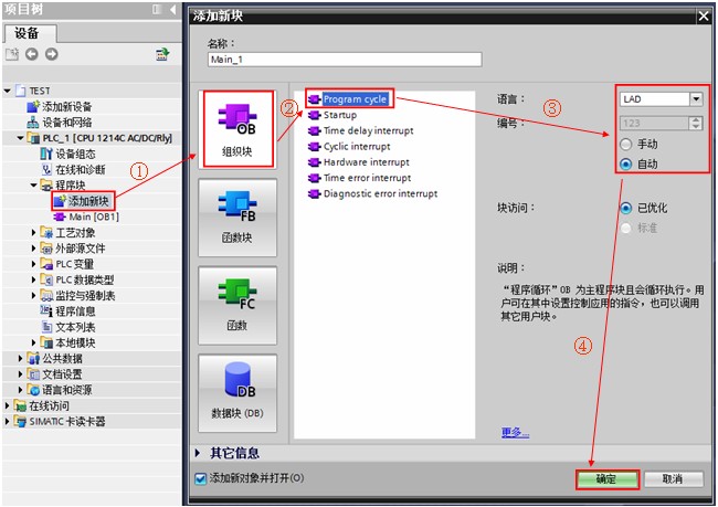 1、按如下步骤创建循环组织块 OB123 。如图2。