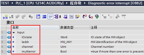 当触发诊断错误中断时,通过 OB82 的接口变量可以读取相应的启动信息,可以帮助确定事件发生的设备、通道和错误原因。OB82 的接口变量及启动信息参考下图1、2。