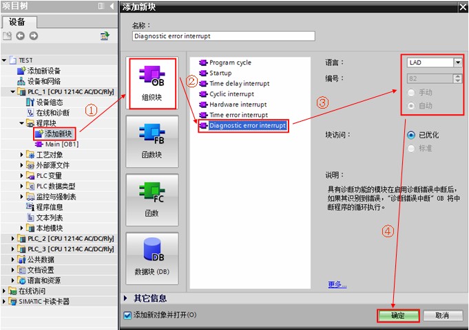 S7-1200支持诊断错误中断,可以为具有诊断功能的模块启用诊断错误中断功能来检测模块状态。