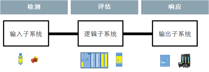 与普通控制系统一样,一个完整的安全系统通常分成三个子系统,分别负责:检测、评估和响应。不同的是安全系统中使用的器件都是需要有安全等级的,或者说在进行安全等级评估时都需要考虑的。