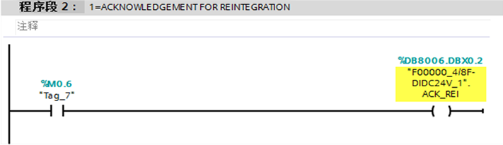 这时只需要脉冲方式将F-IO DB中的变量ACK_REI置位,给出应答信号,就可以完成去钝。
