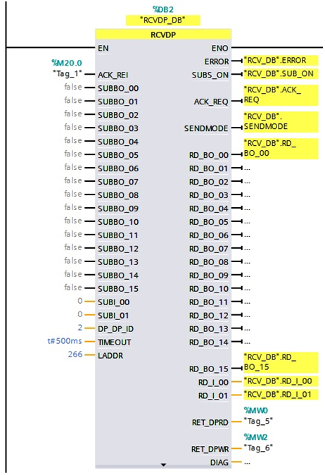 注意:输出变量中,除“RET_DPRD”,“RET_DPWR”和“DIAG”三个变量以外其它的变量都需要用故障安全的数据。