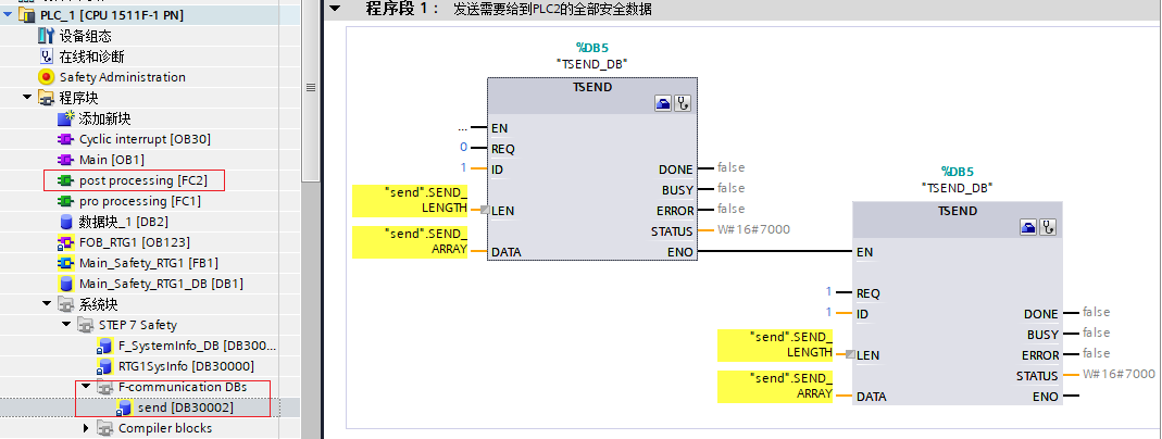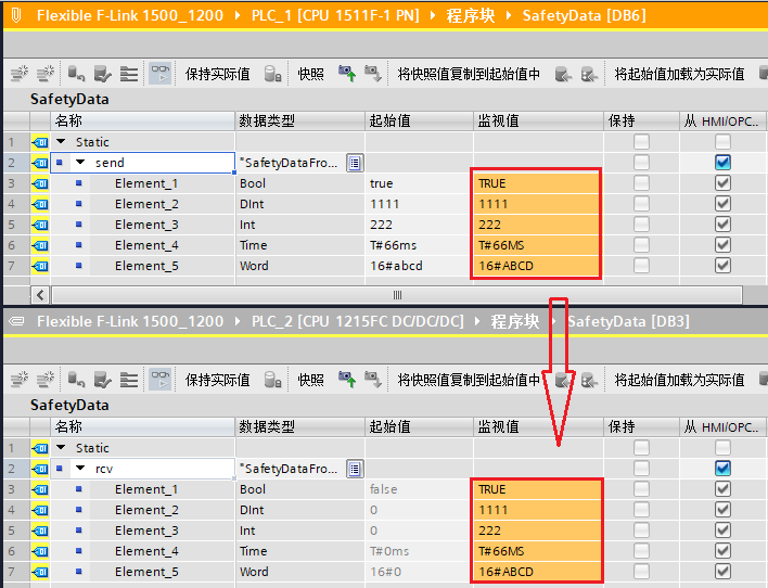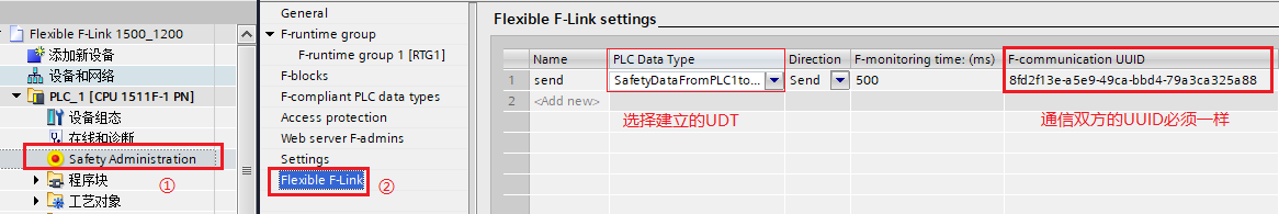 本节内容,将实现将S7-1500F-CPU中的数据通过Flexible F-Link的方式发送到S7-1200F-CPU中。