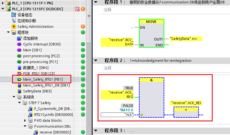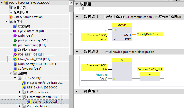 安全主程序中将接收的安全数据从F-communication传送至用户全局DB中。如图21所示: