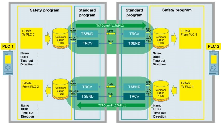 从STEP7 Safety V15.1开始,S7-1200和S7-1500 F-CPU间可以通过Flexible F-Link进行安全数据的交互。这表示安全数据能够以数组的形式通过开放式通信进行交互。