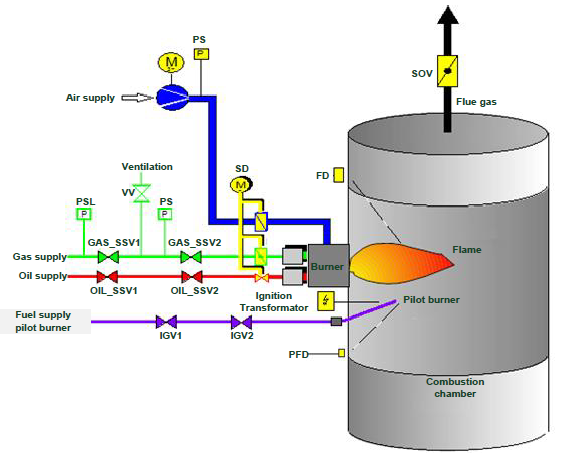 通常,熔炉或燃烧器系统不仅包括实际的燃烧室和燃烧器,还包含有各种自动化和控制组件。与其它所有工厂相同,该系统满足机械指令 2006/48/EG 中的要求,可在工厂的整个生命周期内有效有效避免造成人员伤害、机器损坏以及环境污染。为满足机械指令的要求,可采用统一的标准。为确保自动化工厂运行安全,通常使用 EN 62061 或 EN ISO 13849-1 标准。考虑到(工业用)熔炉,尤其是燃烧器系统的安全,还需使用诸如 EN 746-2 等其它安标准。在此类标准中,介绍了各种潜在风险以及相应的规避措施(结构性和功能性)。