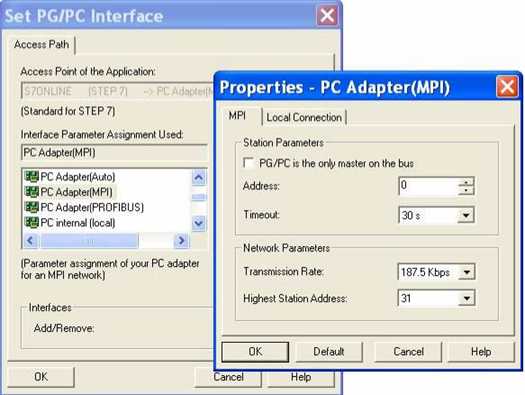 3.CPU接口为MPI/DP口时,如果不确定此前对接口的设置,选择PC Adapter(Auto)。如图1.