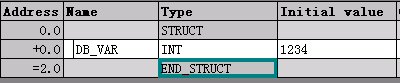 数据块的初始值仅对于一个数据块的"离线"组态有意义。如果用户离线创建了一个新的数据块或者在离线组态的过程中在数据块里创建了一个新的变量,如果用户不做任何修改,新建的变量会使用系统默认值作为初始值,如果用户为此变量指定了其它数值作为初始值,数据块将会多占用相应变量长度的Load memory。在此后的操作中(数据块的上传及下载),只要数据块的结构,变量的数据类型没有发生改变,变量的初始值都没有实际作用,只起到变量类型定义的作用。