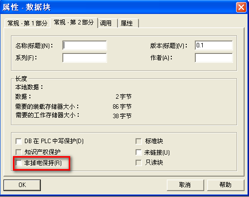 新建的数据块,系统默认其属性为断电保持。如图,DB块的非掉电保持默认未勾选。