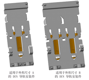 DIN导轨安装套件用于将V20变频器安装在导轨上,仅适用于外形尺寸为A和B的V20变频器。