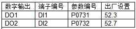 V20具有2路数字量输出(1路晶体管输出和1路继电器输出)功能在P0731、P0732定义,默认晶体管输出(DO1)为故障输出(反逻辑)、继电器输出(DO2)为报警输出。