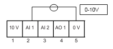 如何将0~10V模拟量电压信号连接至V20模拟量输入(以模拟量输入1为例)调节变频器频率
