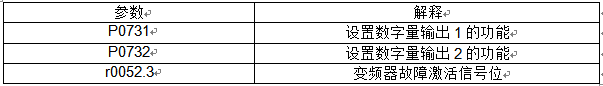 注意:r0052位03“变频器故障激活”,用于数字量输出时为反逻辑,即低电平=故障,高电平=无故障。